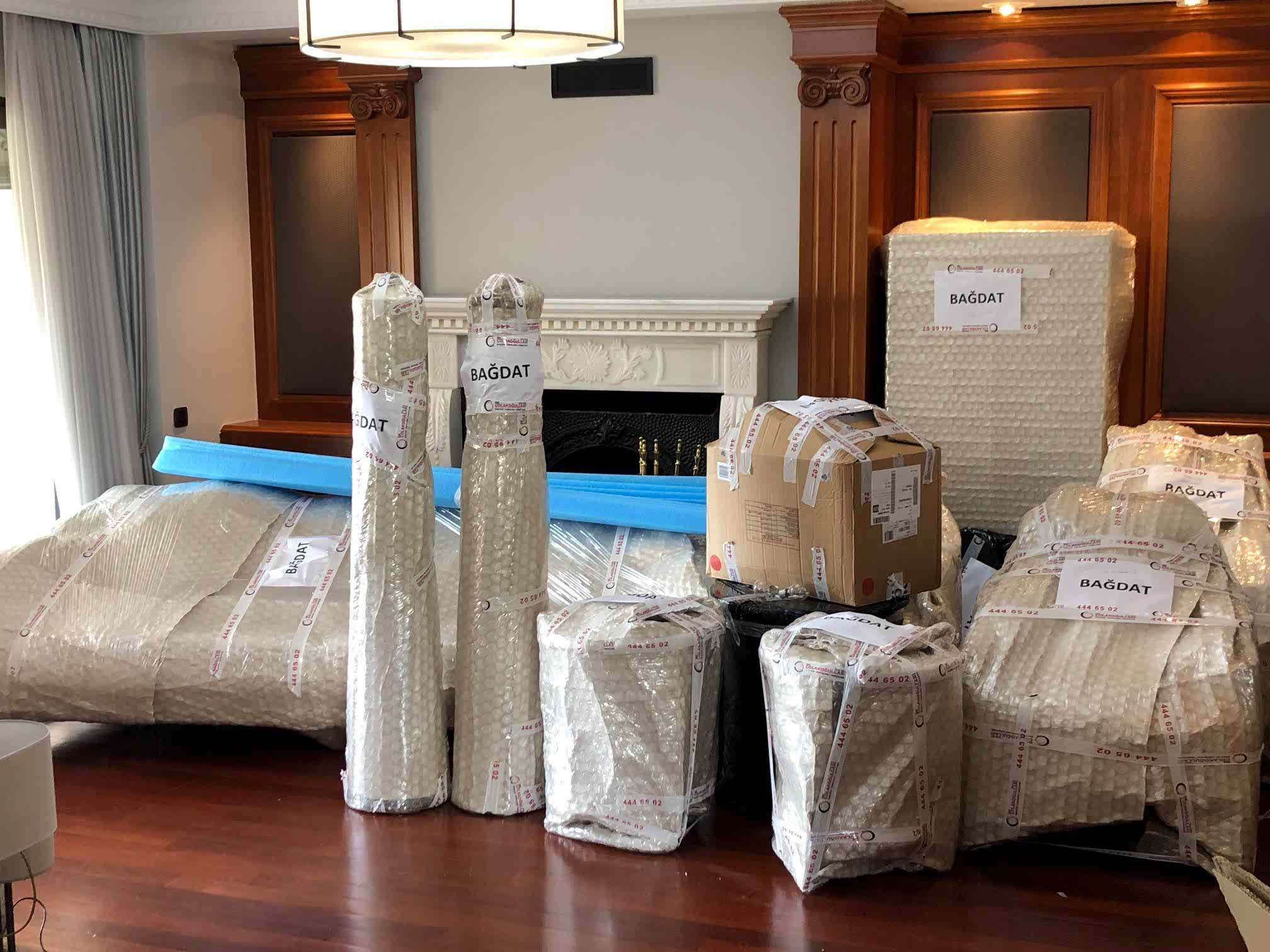 Profesyonel Paketleme: Mobilya ve elektronikler özel ambalajlarla sarılır.